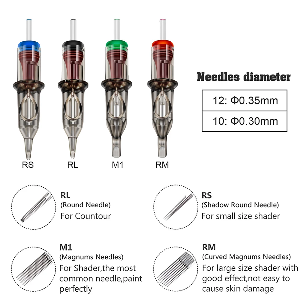 20pcs RL/RS/M1/CM tamanho descartável esterilizado tatuagem cartucho agulhas para escolher